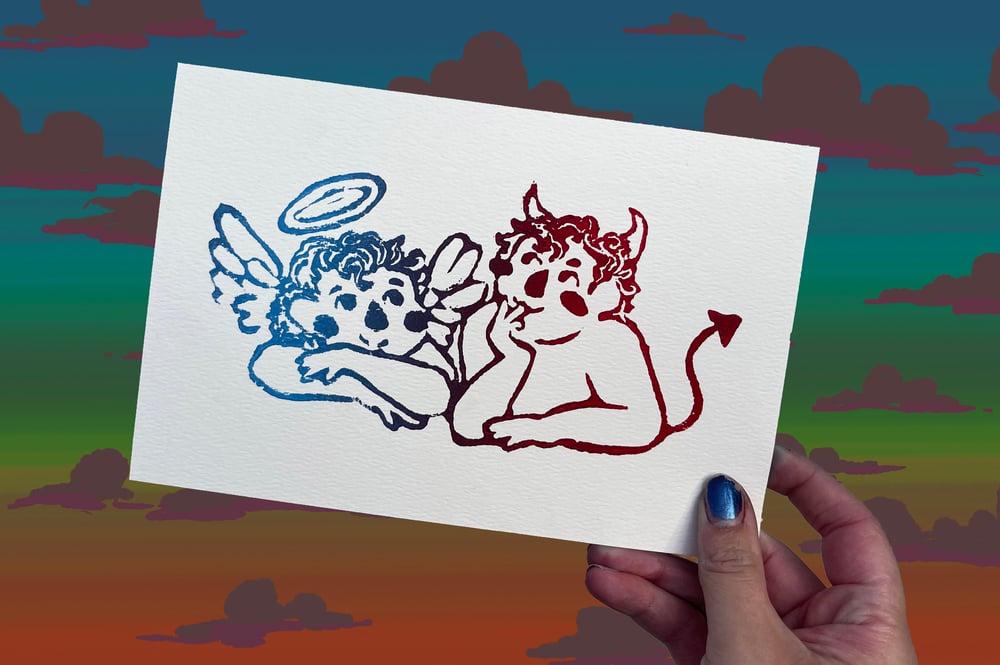 Those lil’ mofos debating on your shoulders, now available as a print!