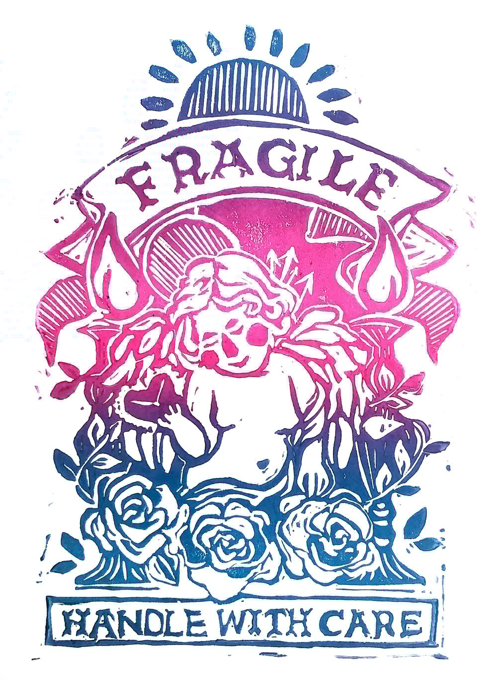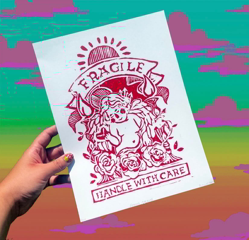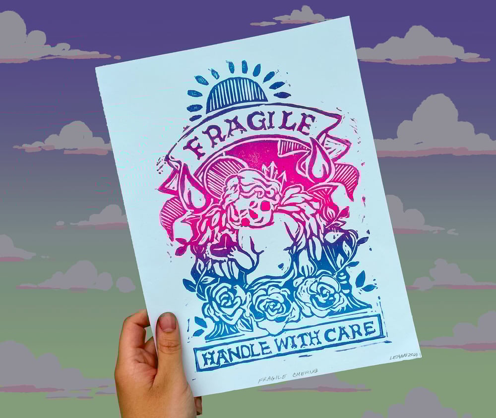 Made to Order Fragile Cherub 9”x12” Hand-Carved Art Print